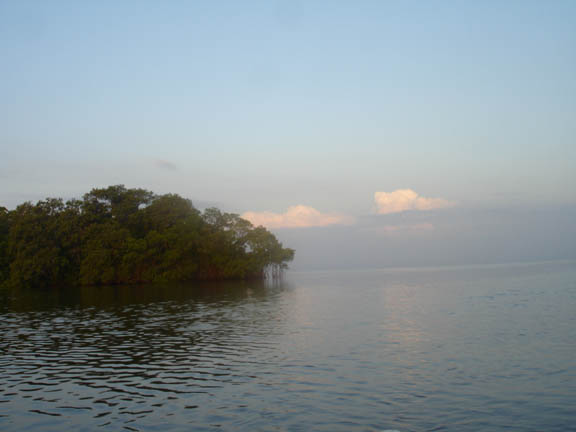 Because the first trip report from Cockroach Bay was cut short by rain, I wanted to give you the full taste of kayaking in this spectacular area. Again, you are seeing a sunrise as we are paddling to beat the heat that is scheduled to be about 96 degrees today. I can't wait for the fall when I can sleep late and go paddling at 2PM, but in the summer in Florida, you need to get on the water early. We have a pretty strong full moon tide this week and the clear water from Cockroach Bay is running out across the acres of grass flats.