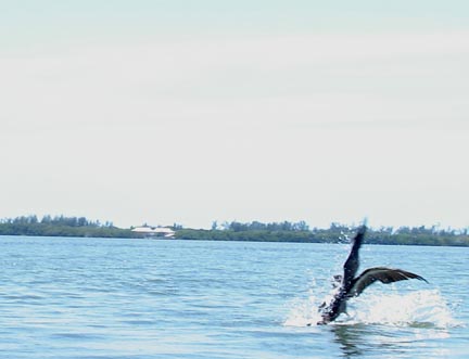 Baitfish are thick in May and this pelican is crashing in on some baitfish.