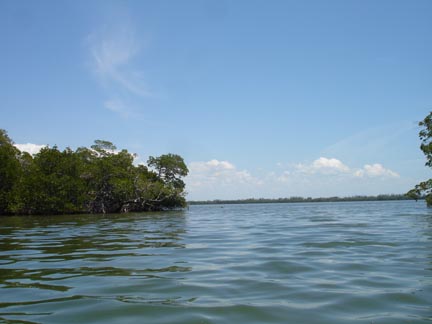 Another view leaving Tarpon Bay and heading into Pine Island Sound in the Ding Darling NWR on Sanibel Island in Florida. This is a special kayaking estuary with many birds at low tide in the winter. We are visiting on a May weekend at high tide so you are able to view less birds than at other times.