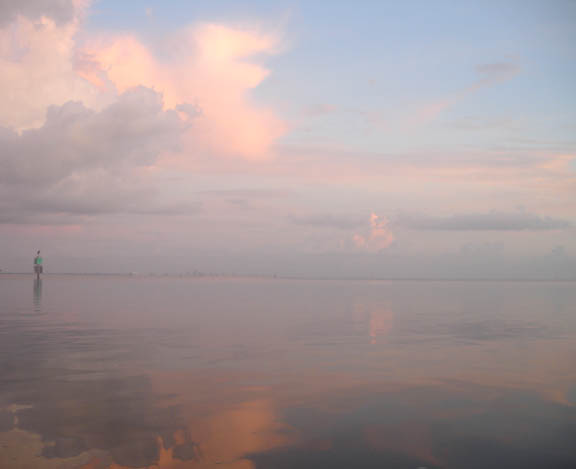 As we are on the water by 6AM this morning, there is an odd quietness to the estuary today. I love the sounds you hear in the kayak and this morning's sound is hundreds of thousands of glass minnows all making noise as they break water together. There are not many days where you get a full east wind in Florida and the water on the "outside" of Tampa Bay is like glass.