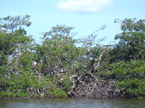 It is hard to see from this picture, but the island is a beehive of activity as adult birds watch over gaggles of chicks that are noisily begging for small fish and crabs that the parents bring back. Every corner of the island has movement hidden in the mangroves